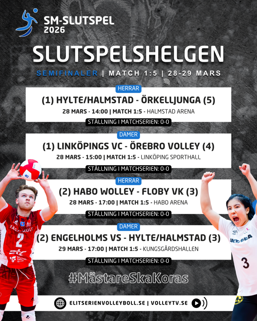 SM-slutspelet tuggar vidare och är nu framme vid semifinalspelet. Elitserienvolleyboll.se levererar rapport och länkar till spelschema, livescore och streaming.